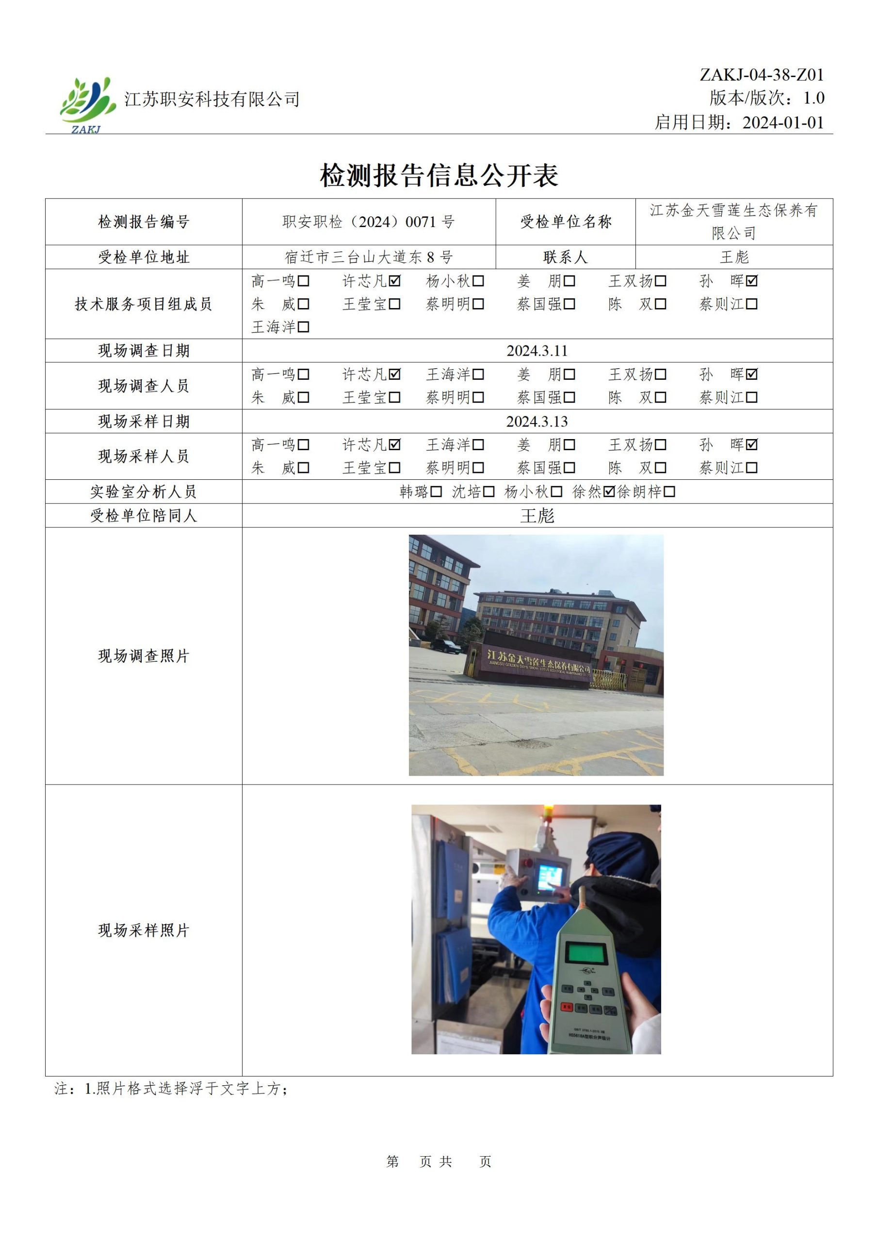檢測報告公示