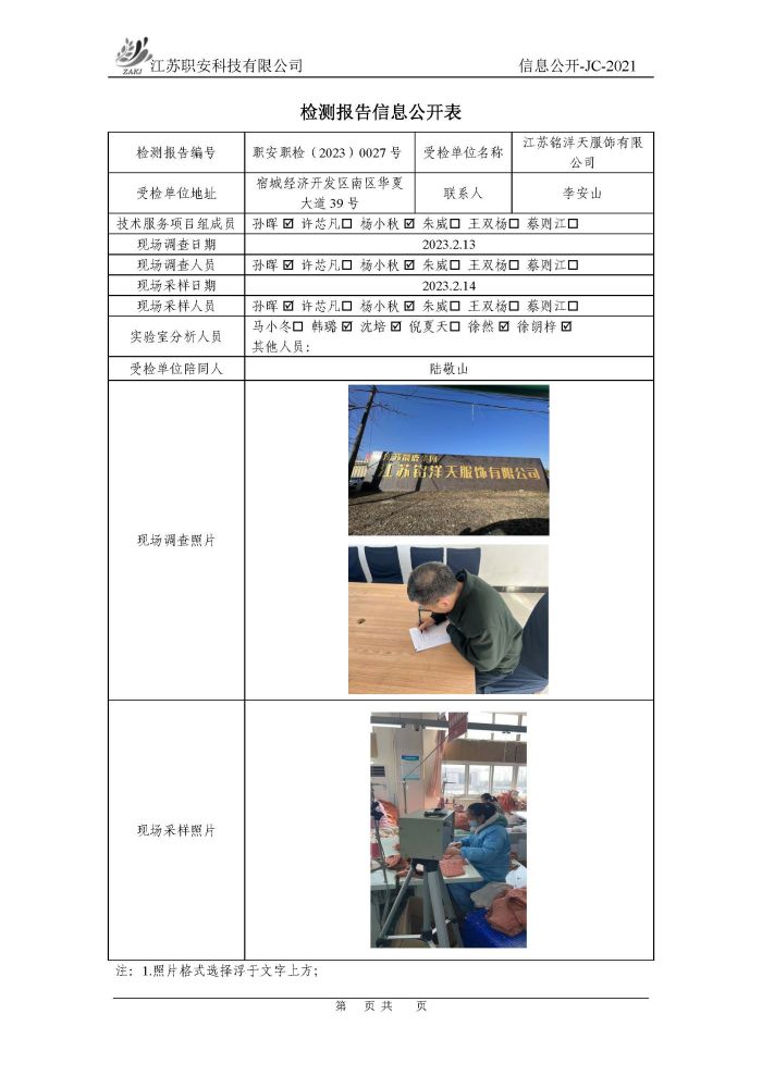 檢測報告公示