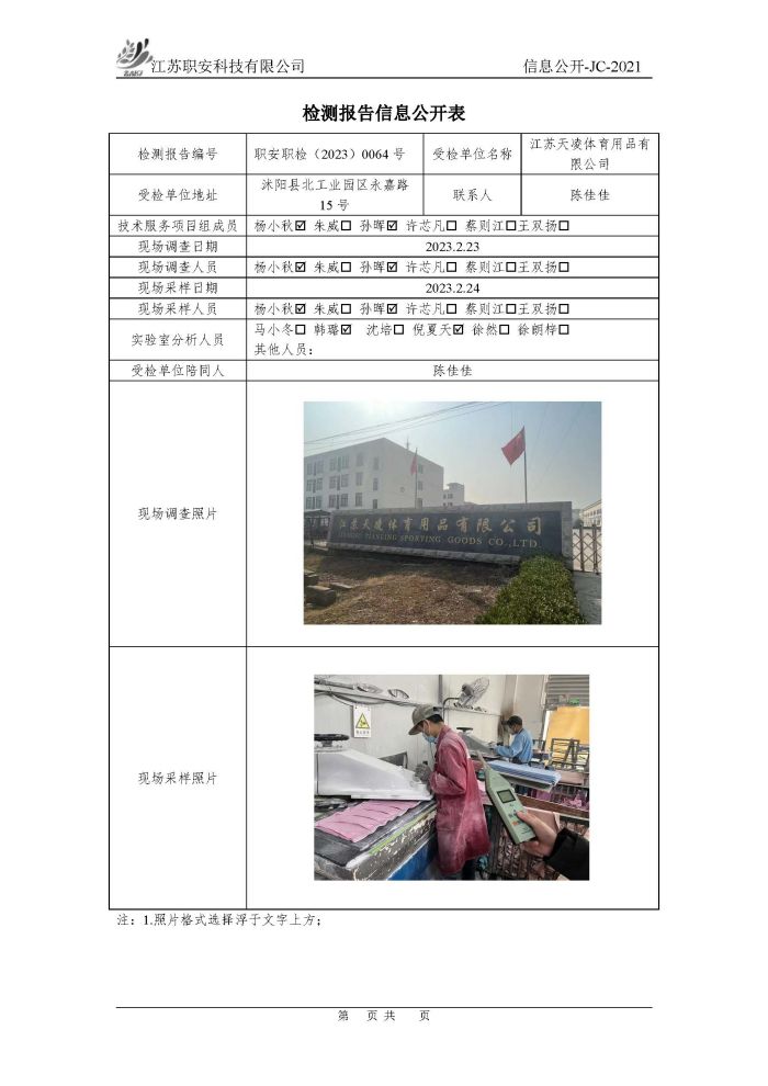 檢測報告公示