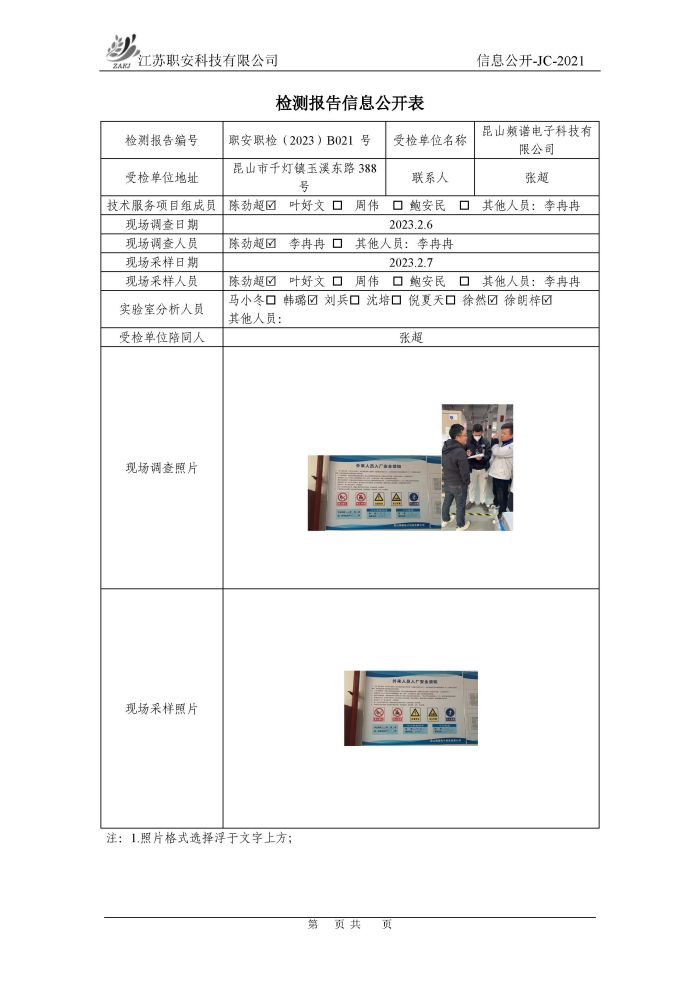 檢測報告公示