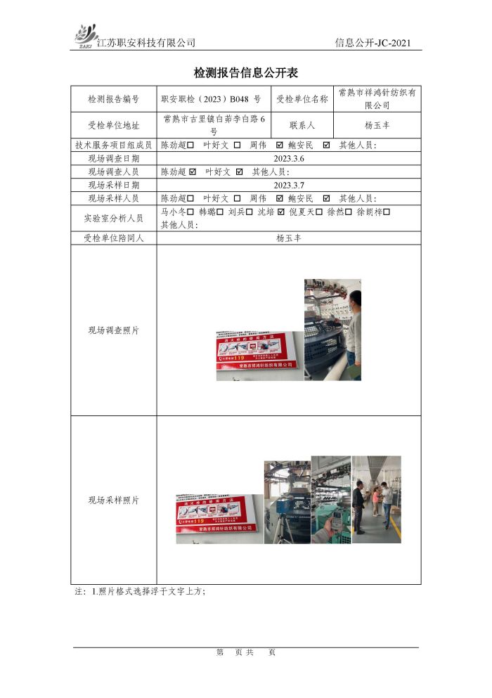 檢測報告公示
