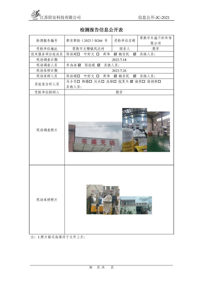 檢測報告公示