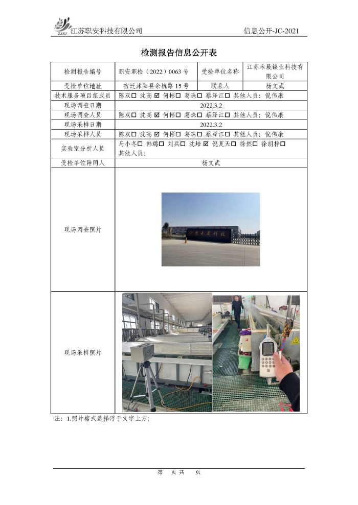 檢測報告公示
