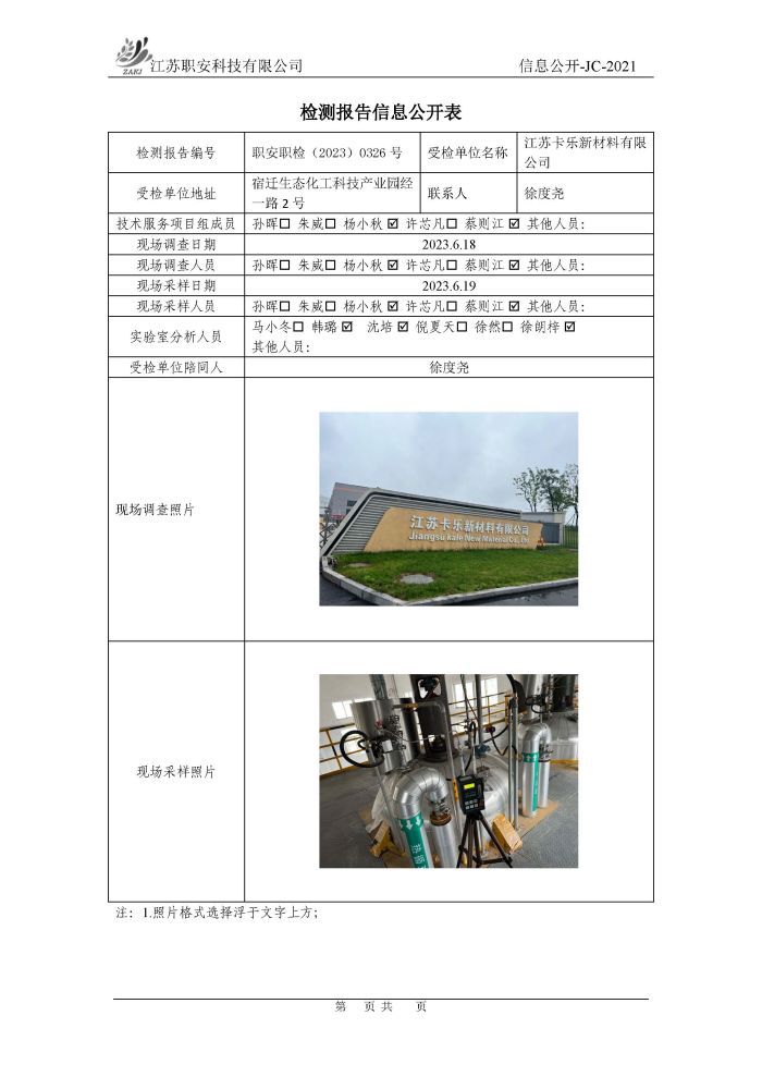 檢測報告公示