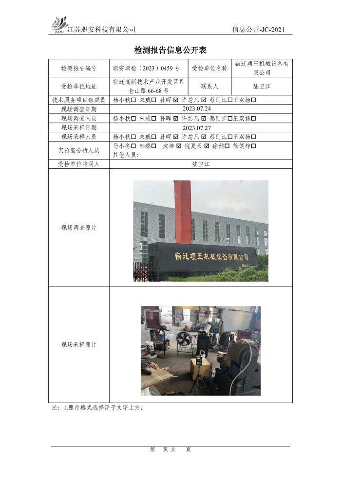 檢測報告公示