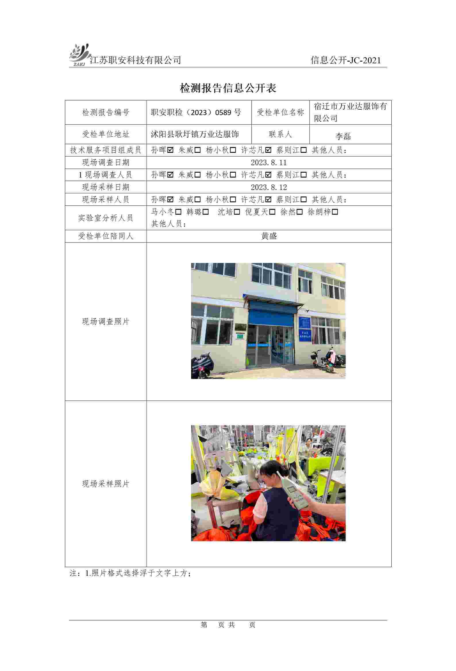 檢測報告公示