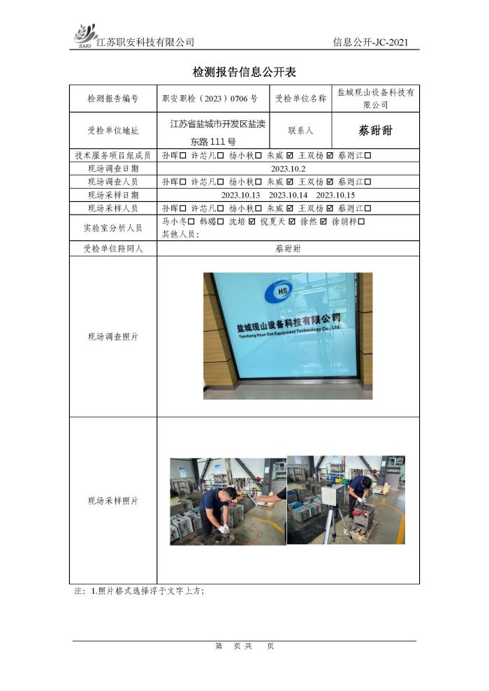 檢測報告公示