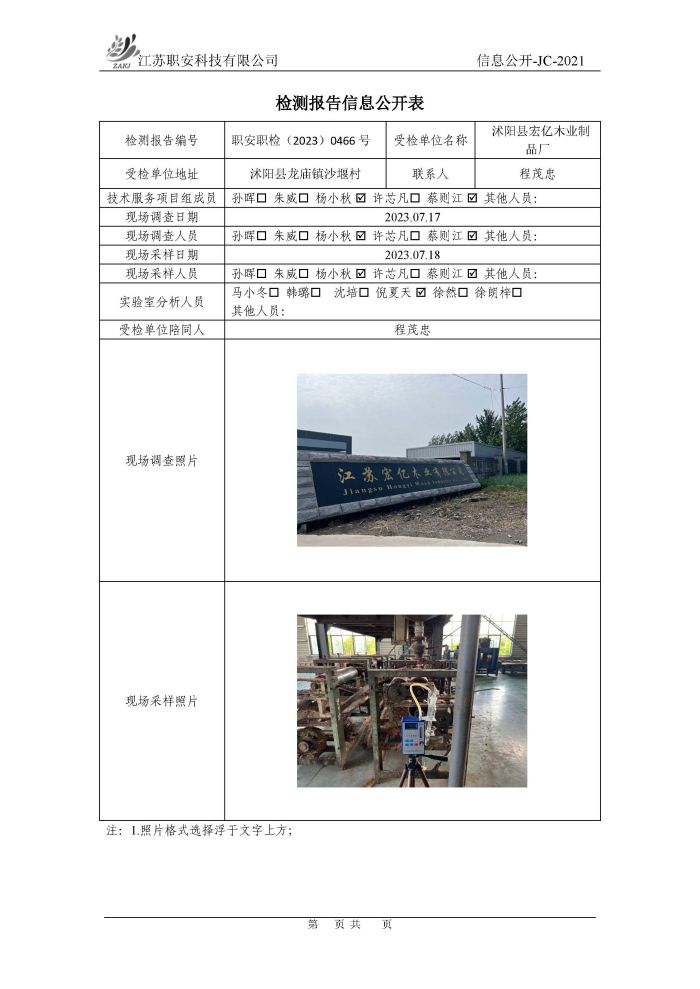 檢測報告公示