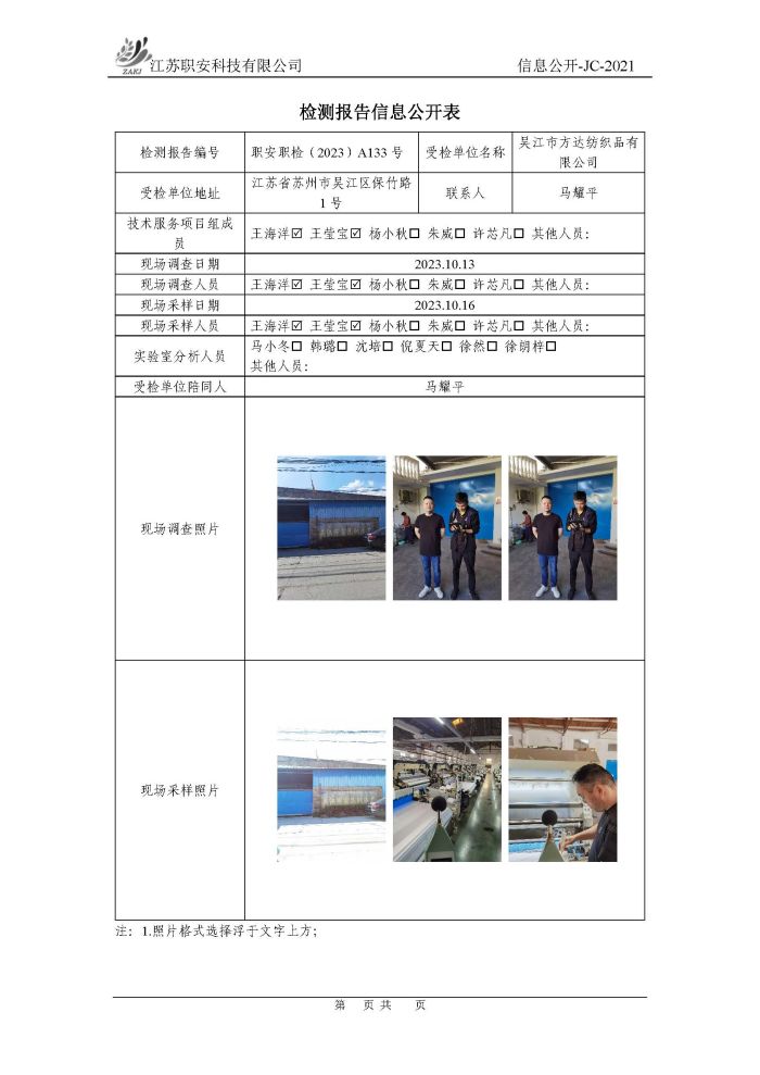 檢測報告公示