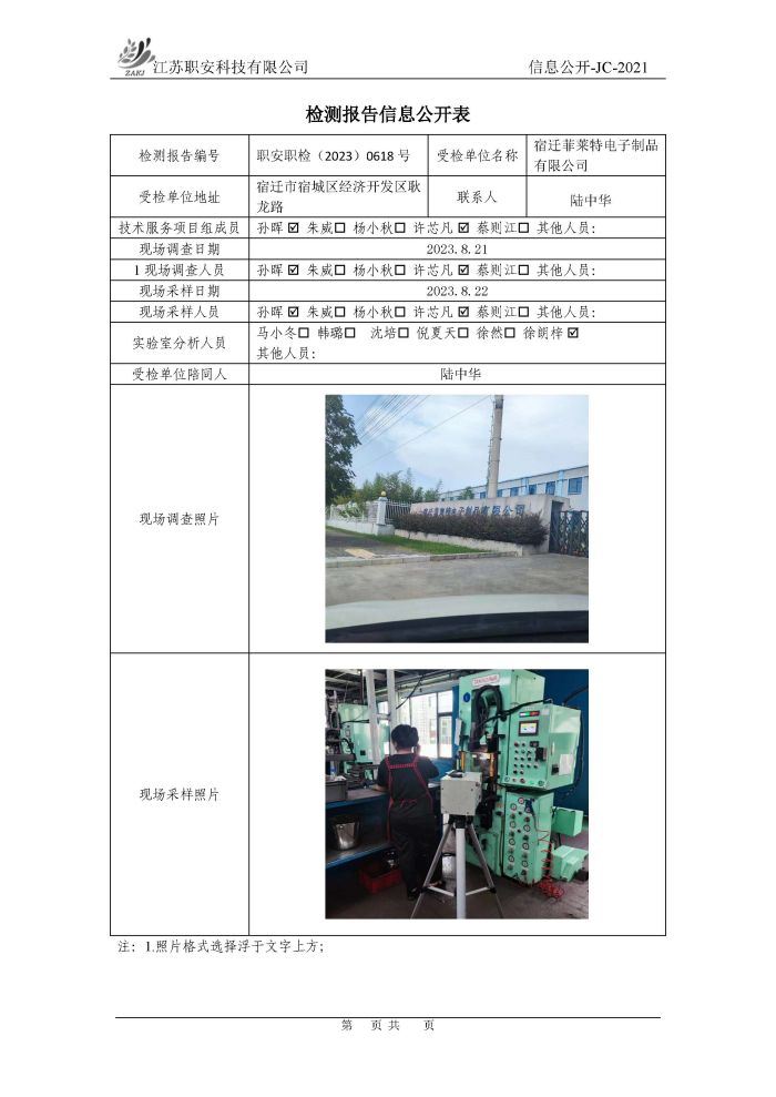 檢測報告公示