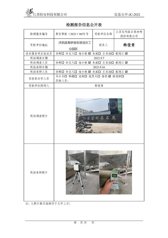 檢測報告公示