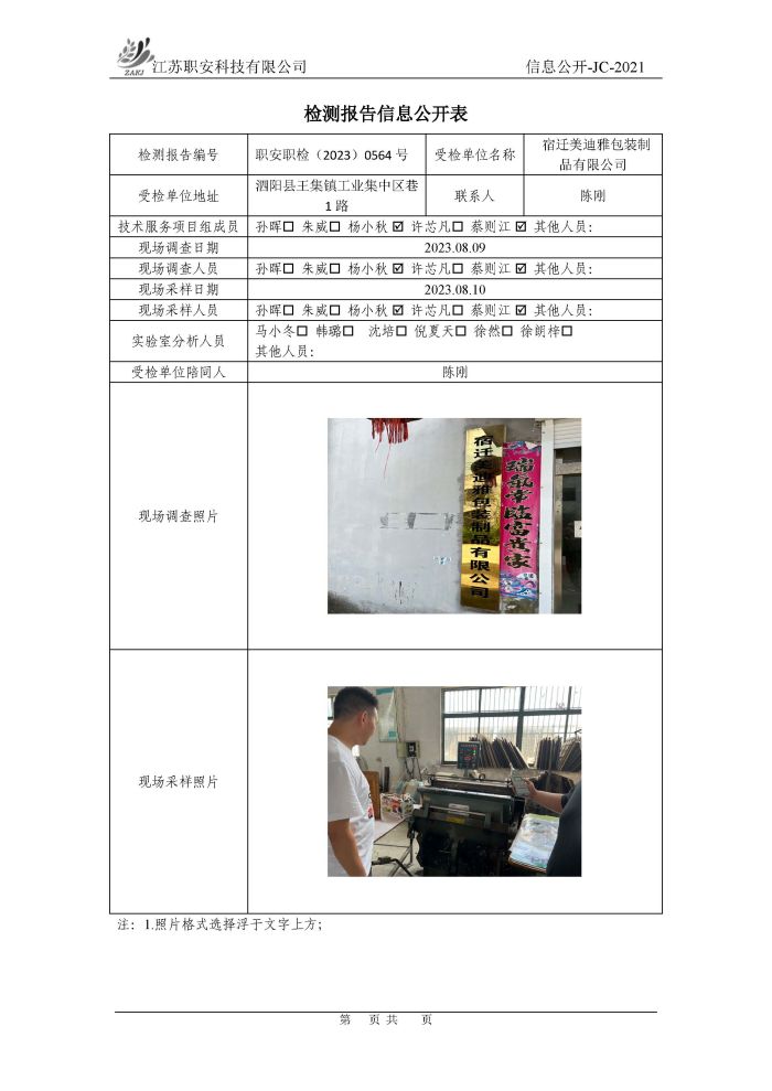 檢測報告公示