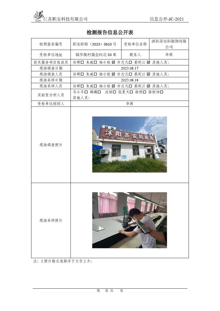 檢測報告公示