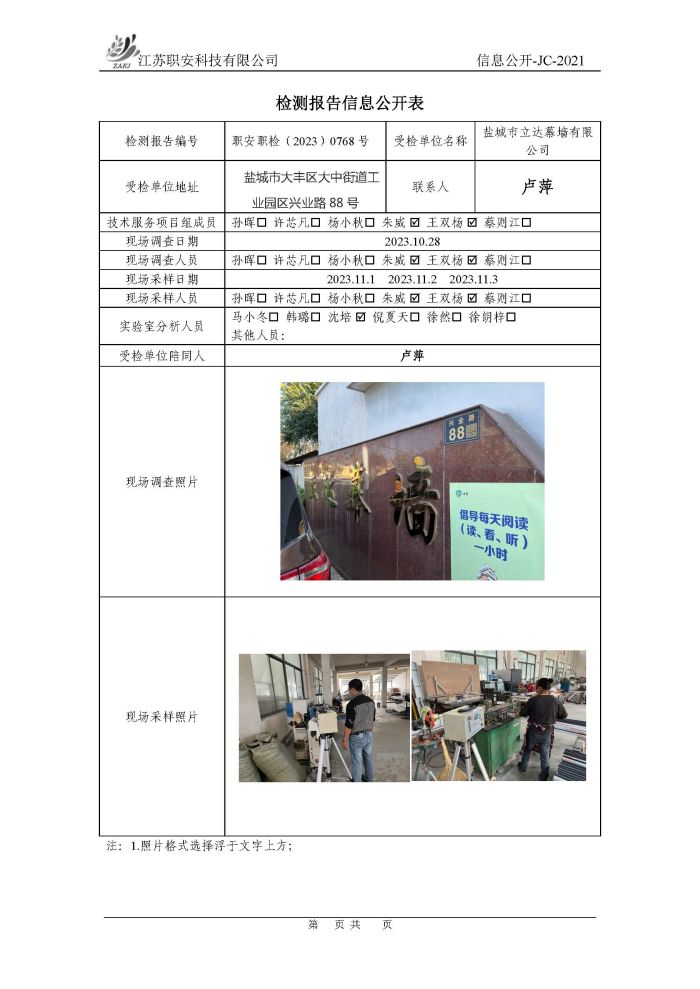 檢測報告公示