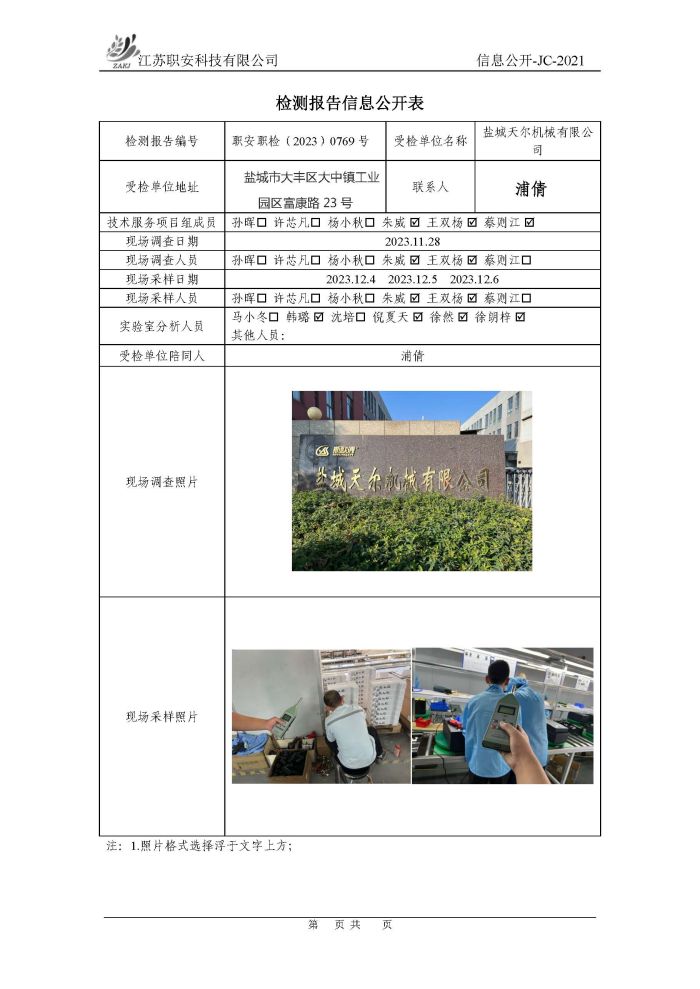 檢測報告公示