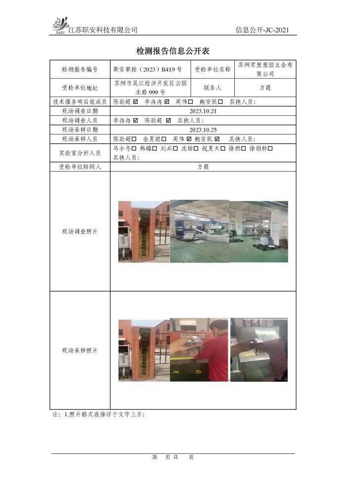 檢測報告公示