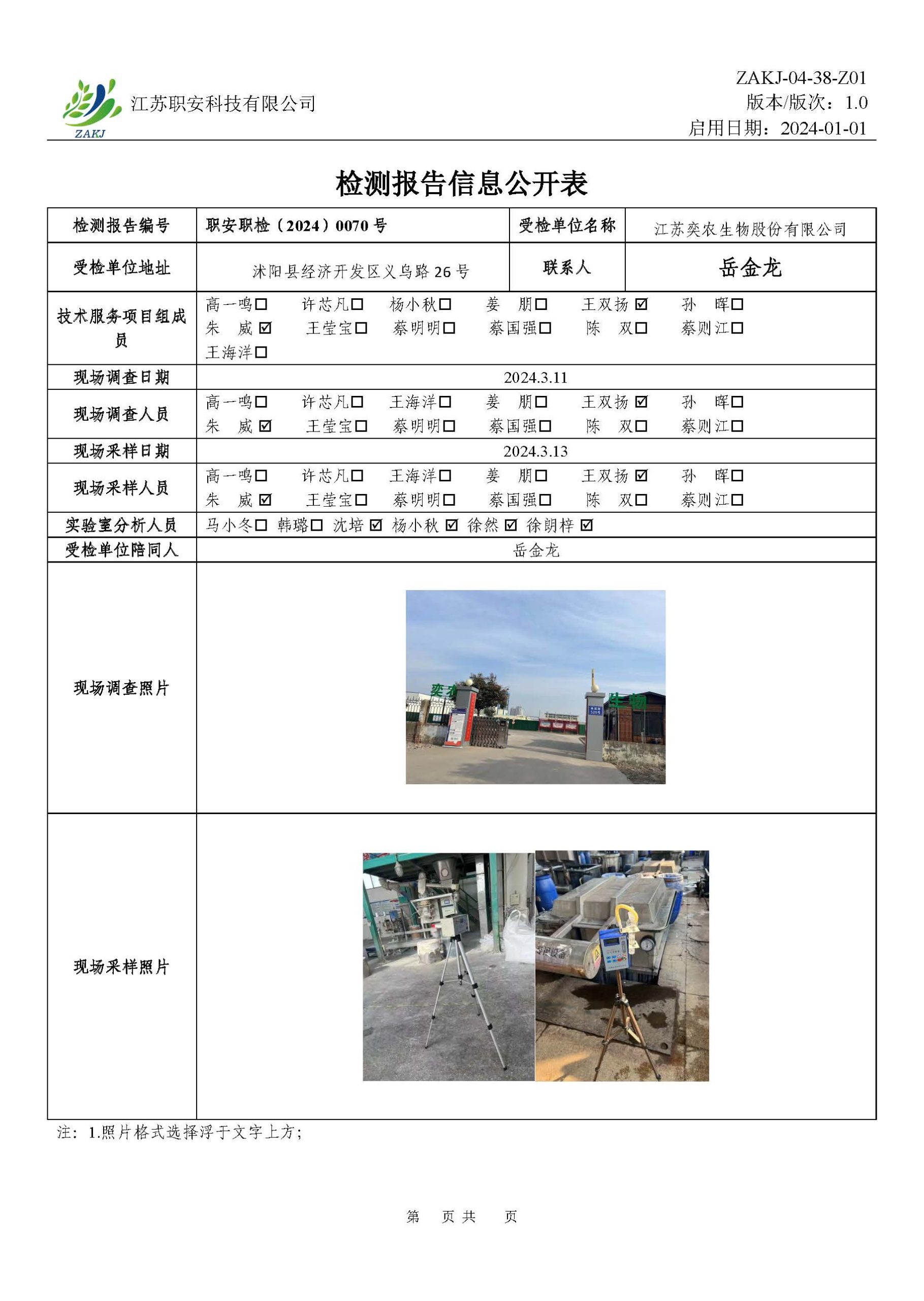 檢測報告公示