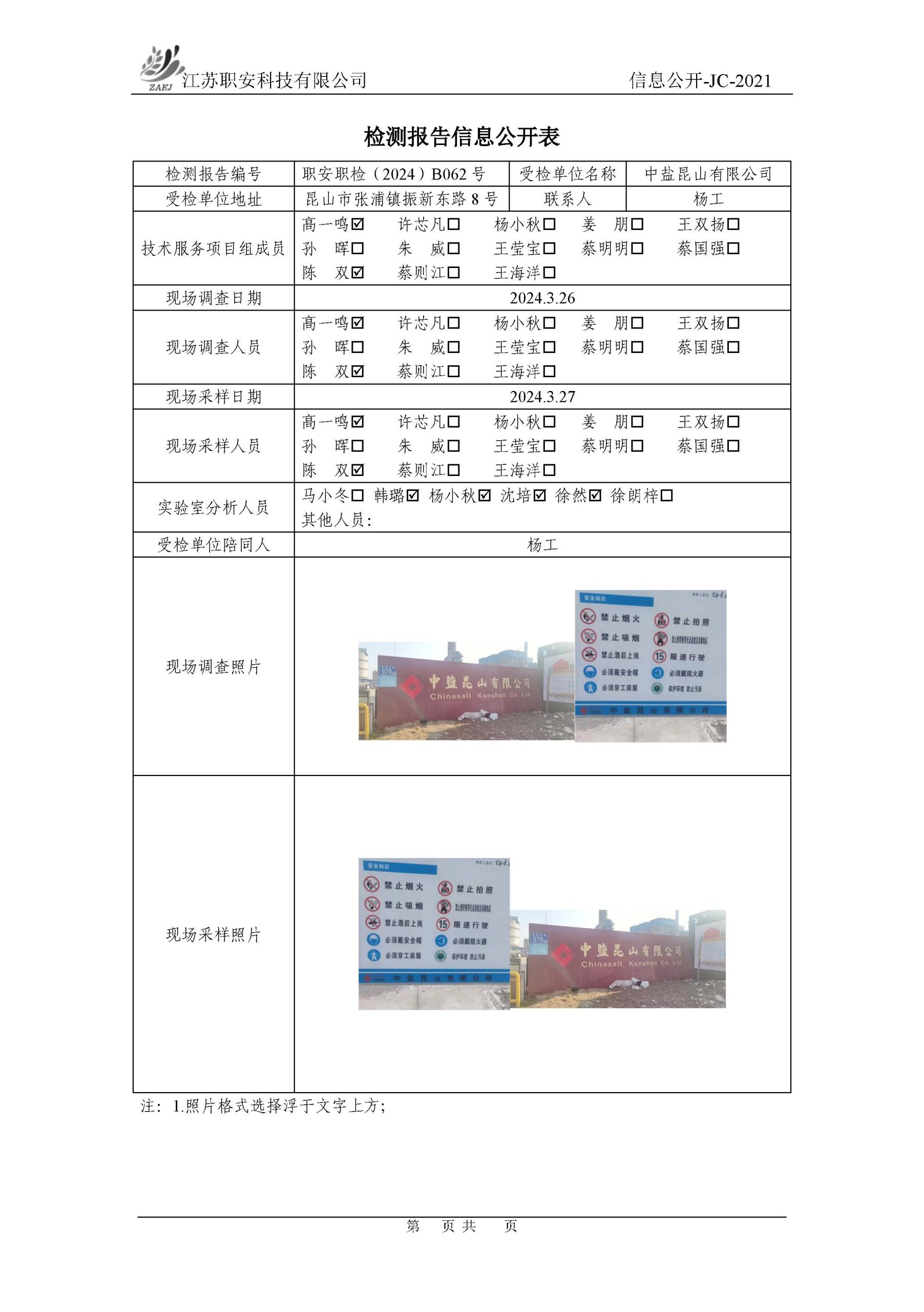 檢測報告公示