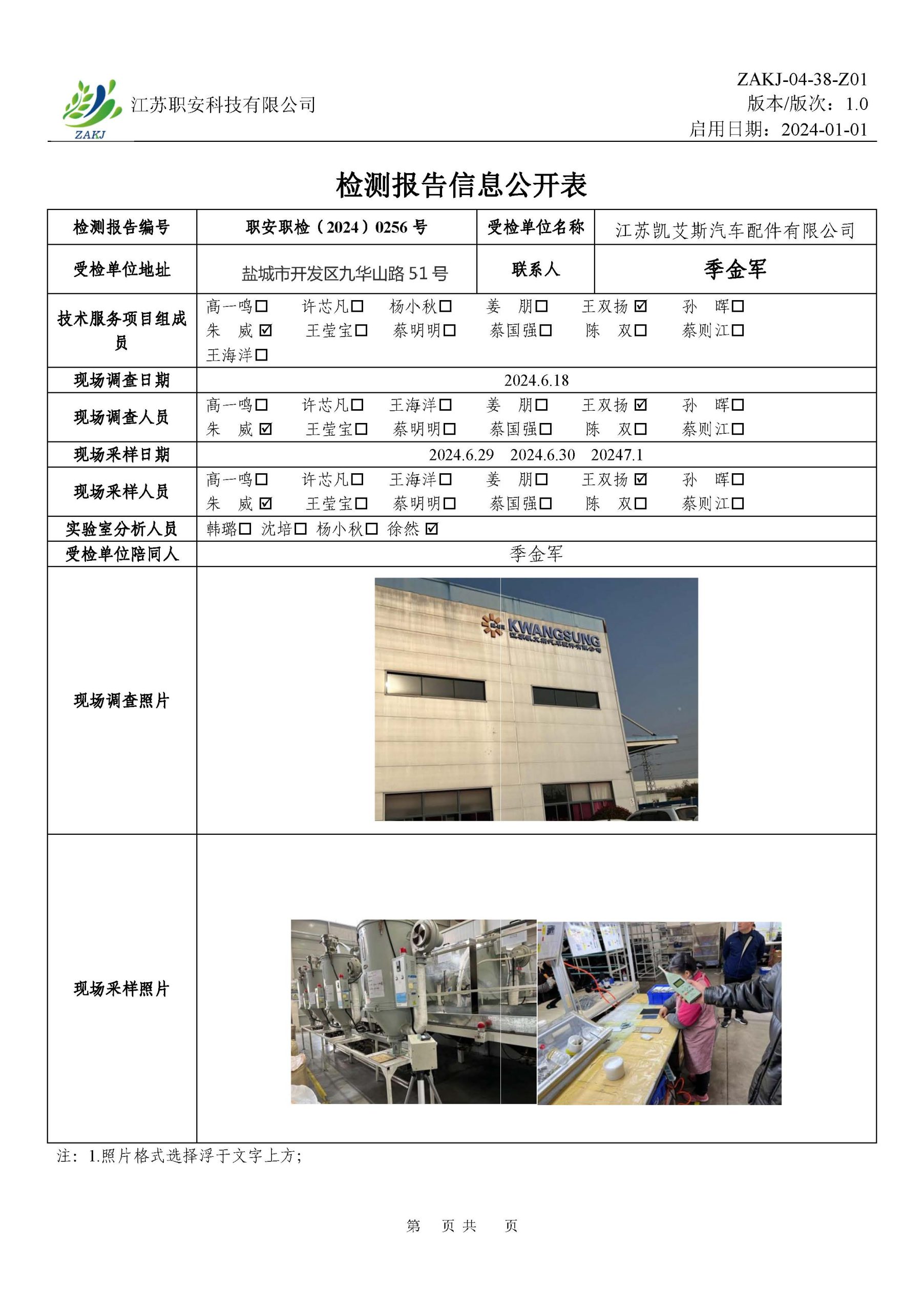 檢測報告公示