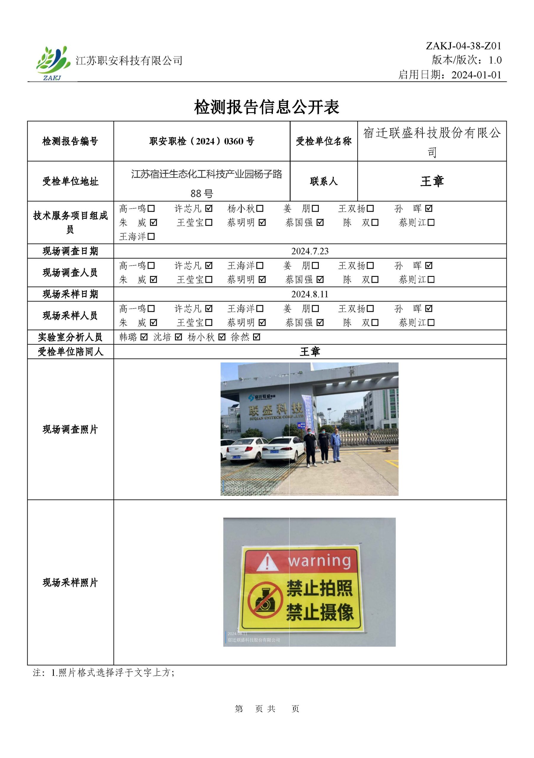 檢測報告公示