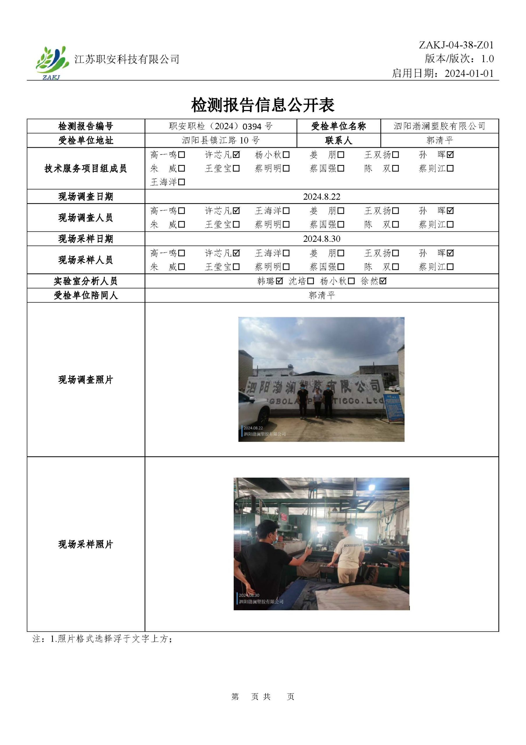 檢測報告公示