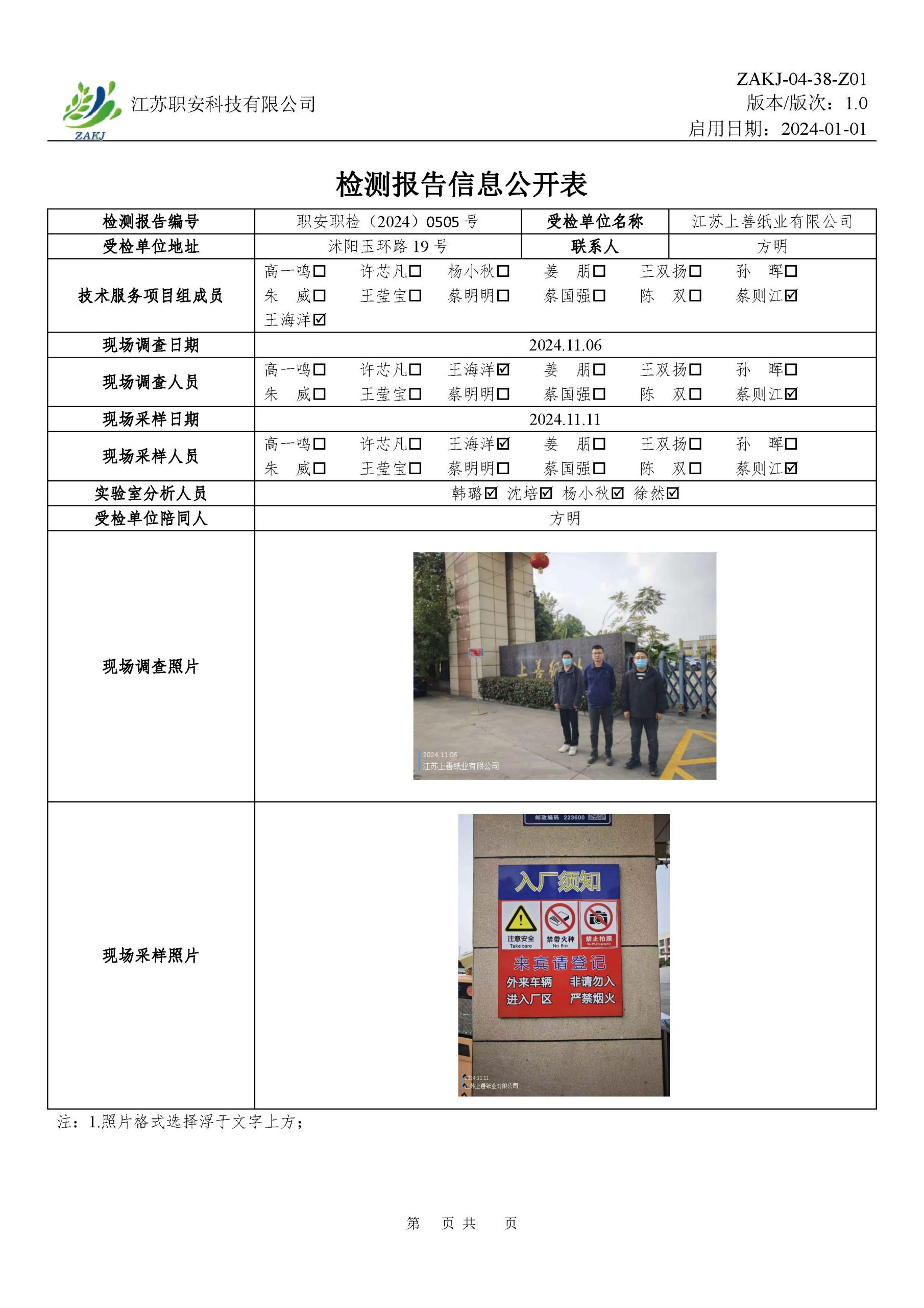 檢測報告公示