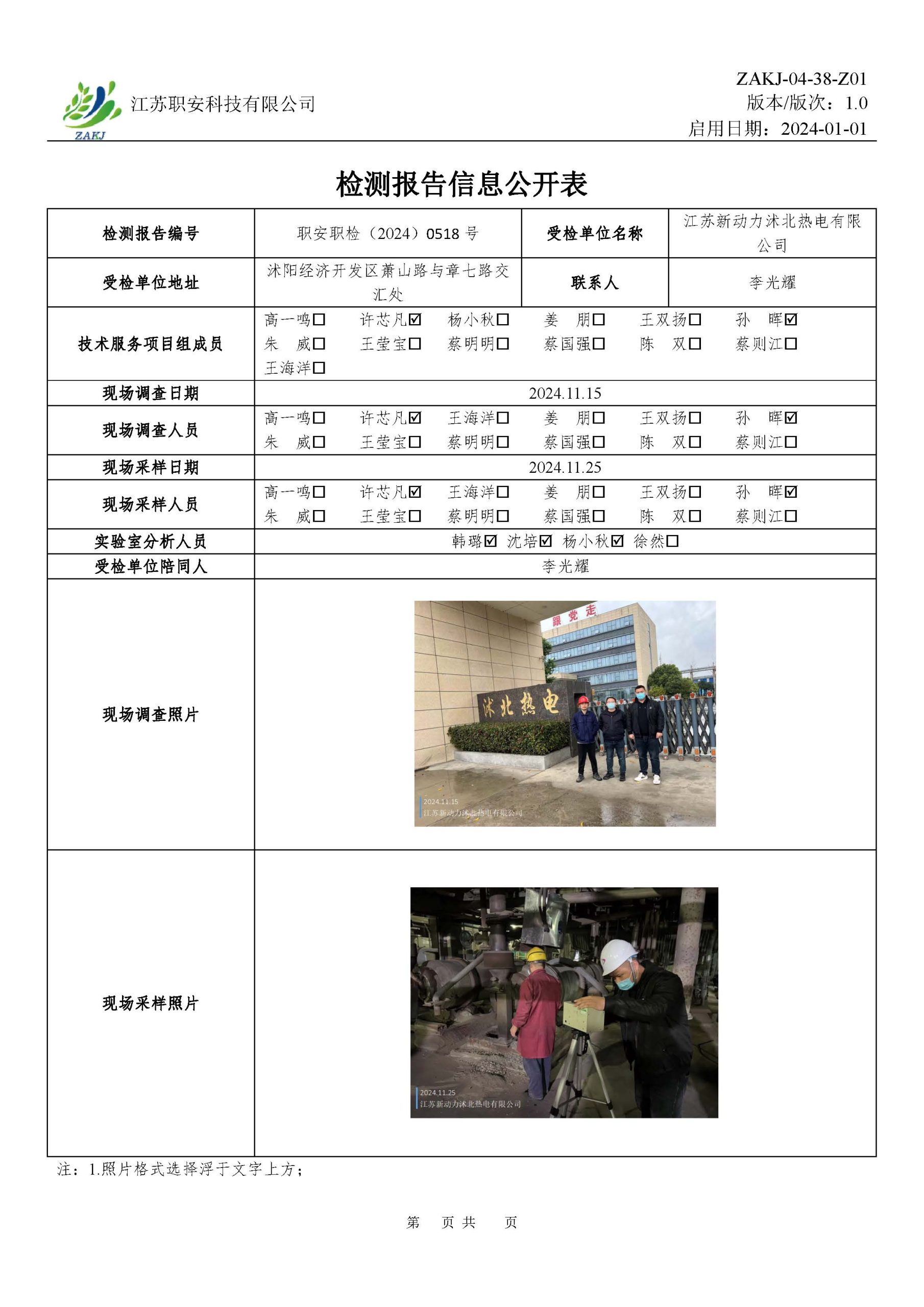 檢測報告公示