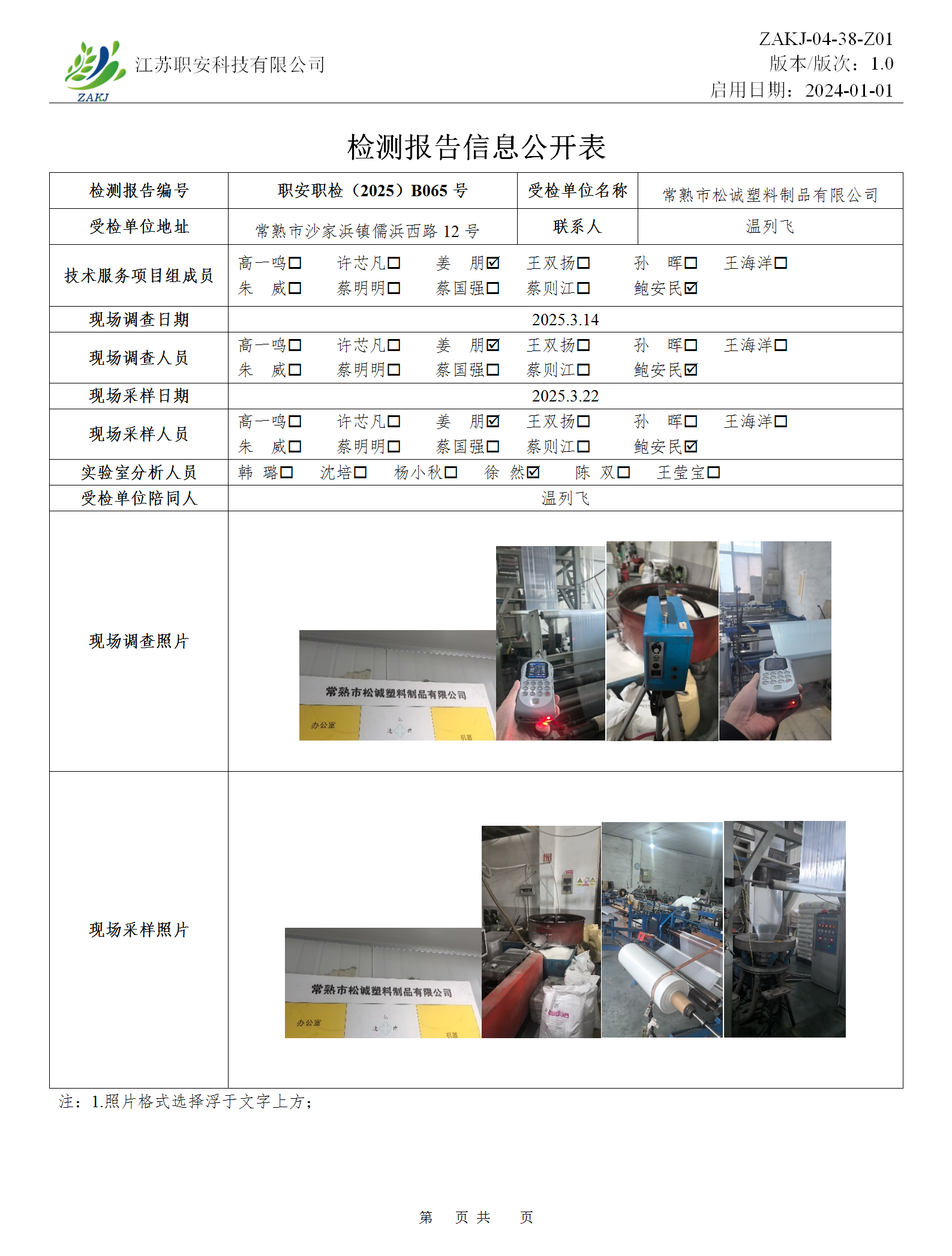 檢測報告公示