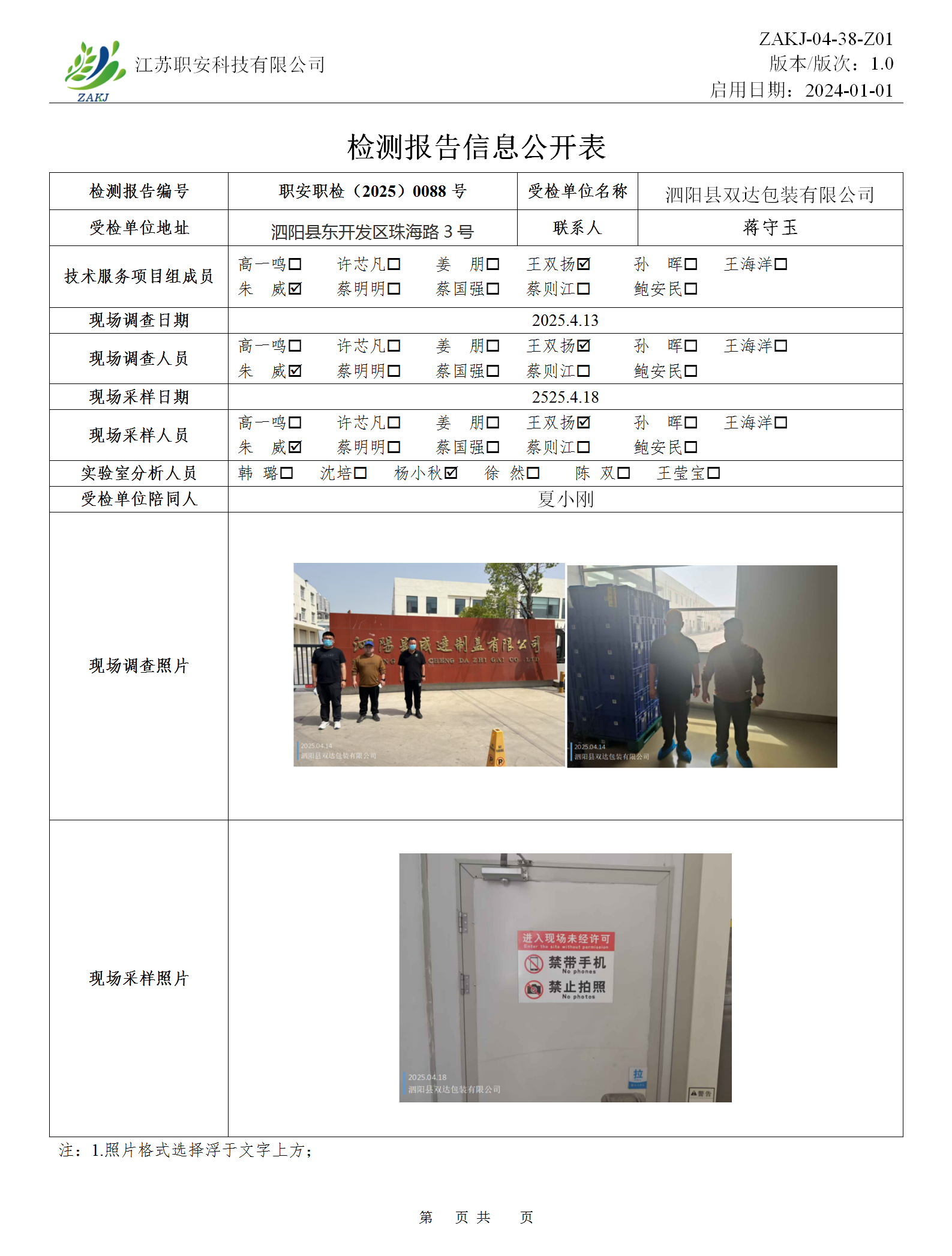 檢測報告公示
