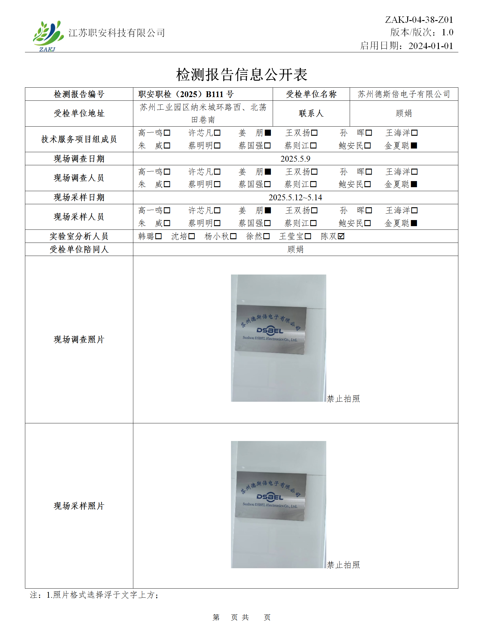 檢測(cè)報(bào)告公示