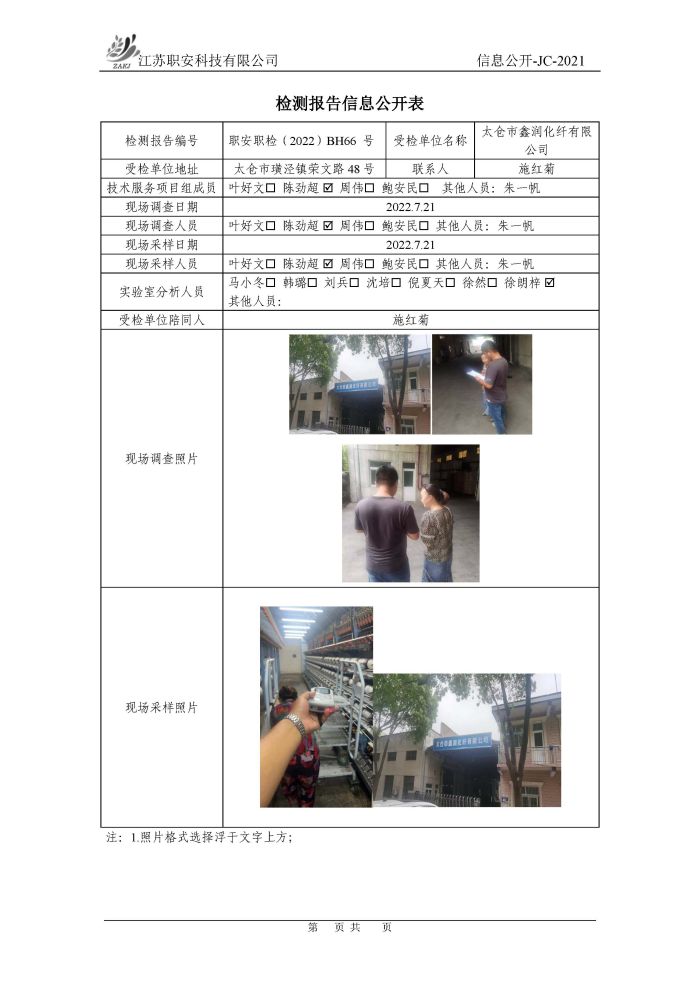 檢測報告公示