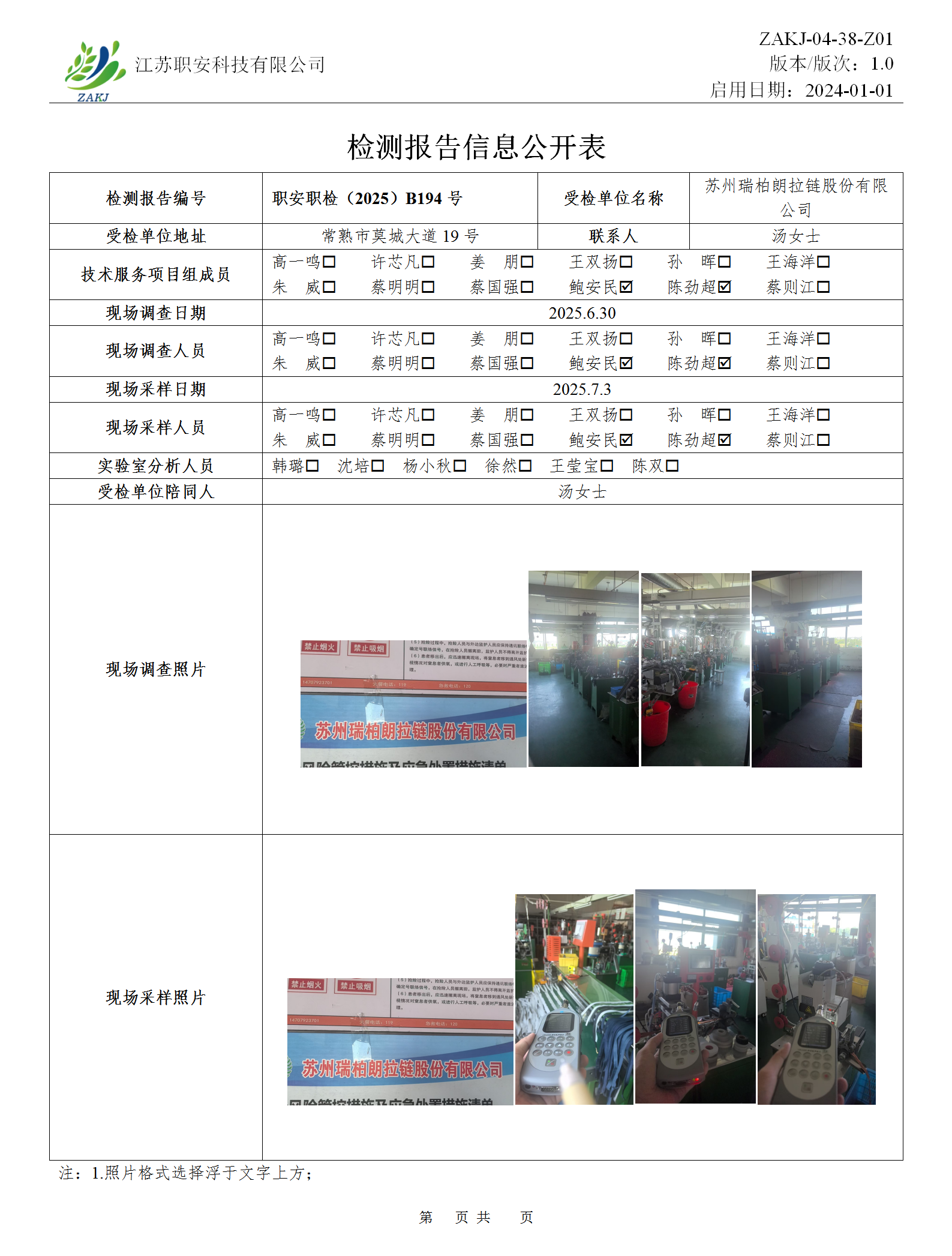 檢測報告公示
