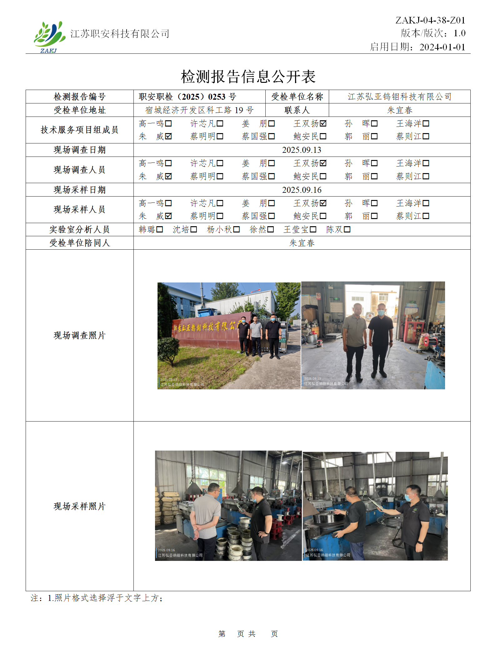 檢測報告公示