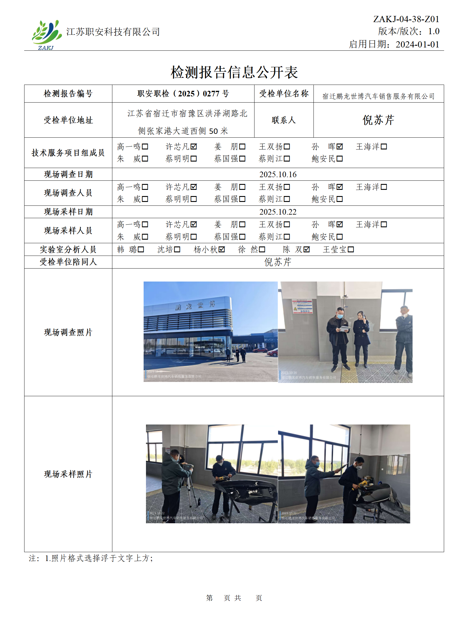 檢測報告公示