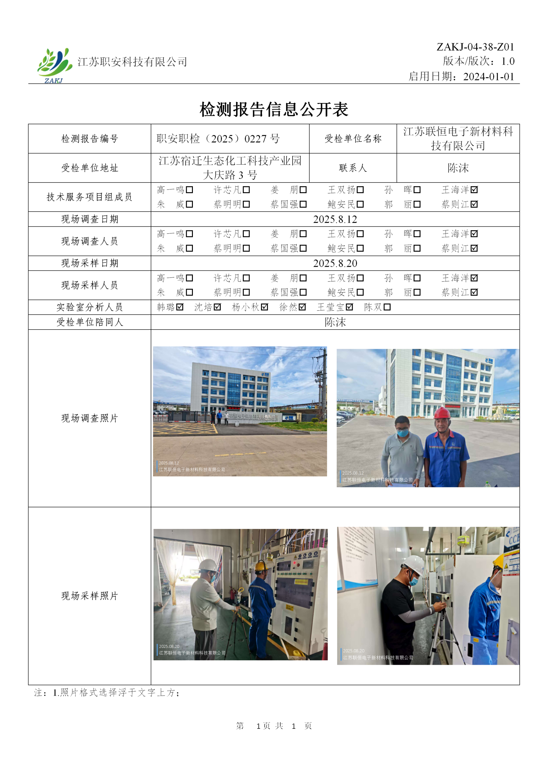 檢測報告公示
