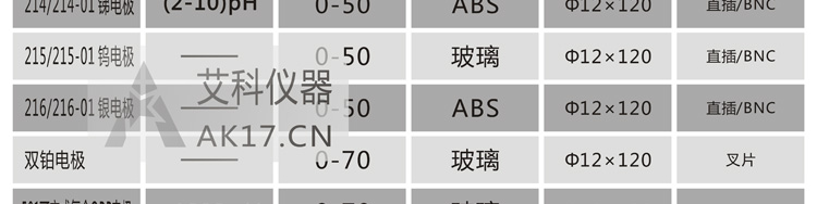 214/214-01銻電極:銻電極不受氫氟酸腐蝕,一般測量含有氫氟酸溶液的pH值時(shí)常采用銻電極。